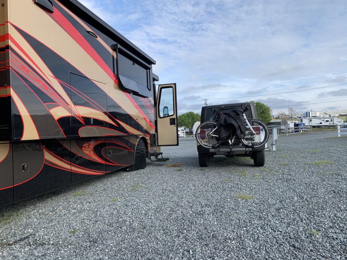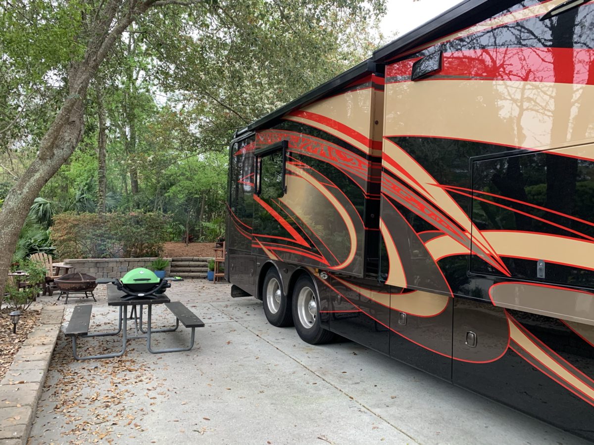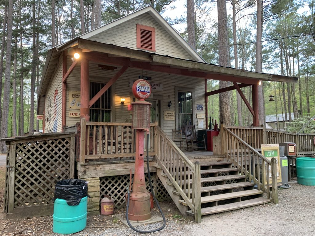 The bad side: Alabama allows full-time residents in their state parks, on the condition that they move every 14 days. People stay there forever, just moving back and forth between neighboring sites. So maybe half the RVs there look like they’re pretty permanent–furniture out front, etc. We saw one guy with a 50″ TV sitting on a banquet-type table and lazy-boy chairs out front. Play tents, bicycles, pet shelters, hammocks, dogs, etc. all over the place. Another issue—it’s a no-no to walk through someone’s campsite in nearly every CG in the country (except this one). Not here–kids and adults stream through your site.