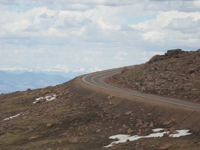 It’s about a 20 mile drive from the gate ($15 per person) to the top of the mountain at >14,000 feet. It takes about 45 min to make the drive. The record, by a rally car champion, is about 8 min.