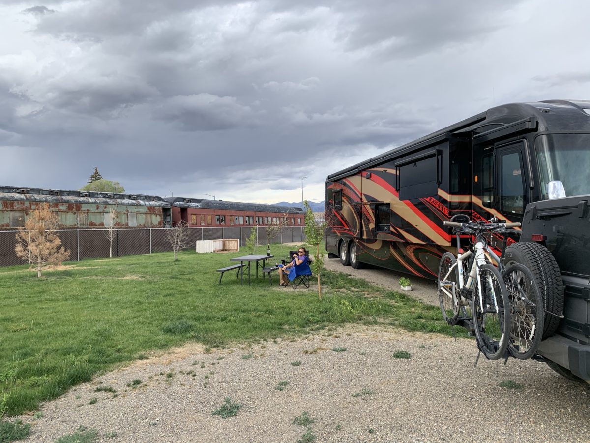 Waiting for a pizza. Neat little city RV park right downtown. We walked around seeing all the (closed) businesses.