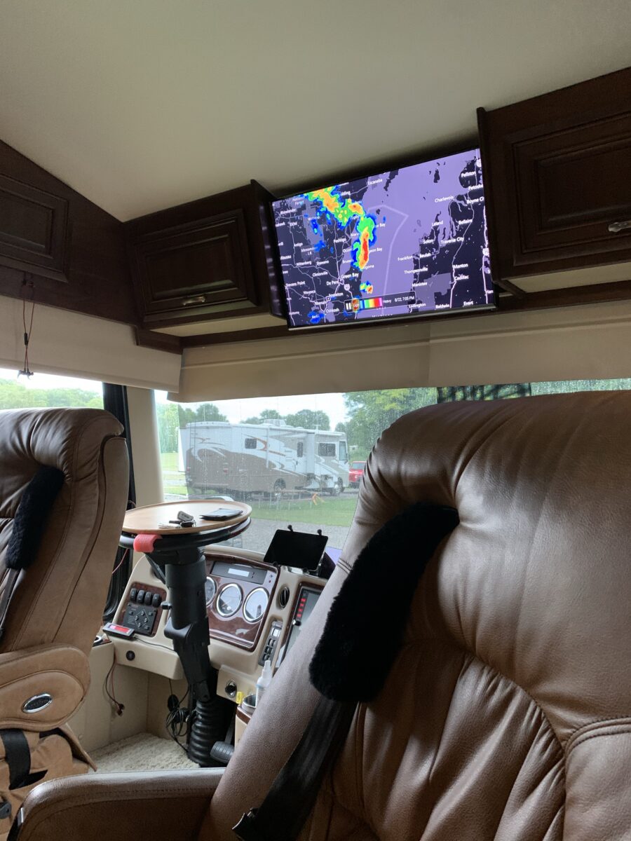 Rainy day…watching the storm go through on the rig’s advanced radar system.