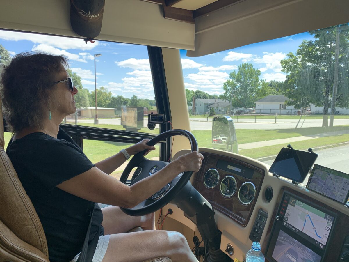 We’re near Grand Rapids at a big orchard and winery. Free stop, Harvest Hosts. Tried a new-to-us “Saturn” Peach. Sort of flattened-looking. Very sweet and juicy.