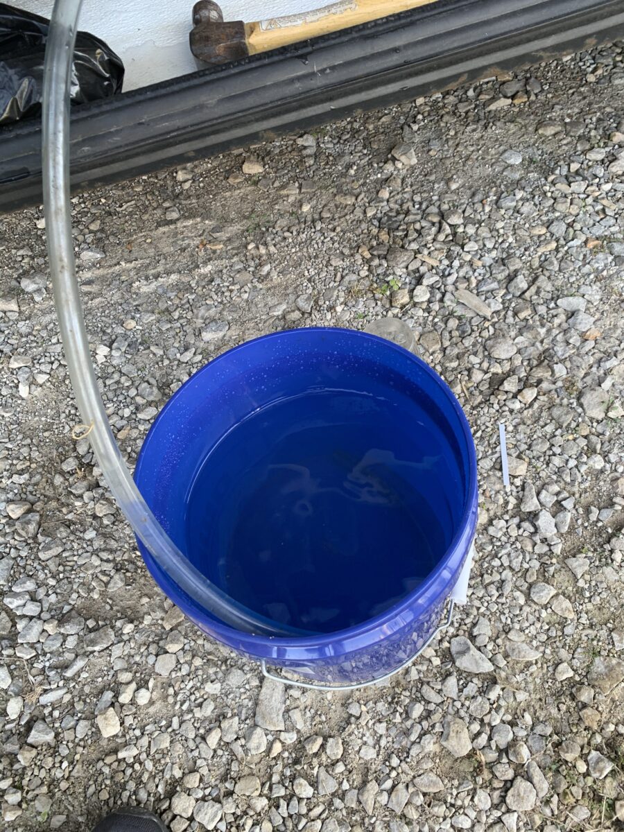 A day-long job to sanitize tanks and lines. Starts with ingesting bleach-water mixture via the pump and a bucket. Then the water sits for six hours, then it all gets flushed…