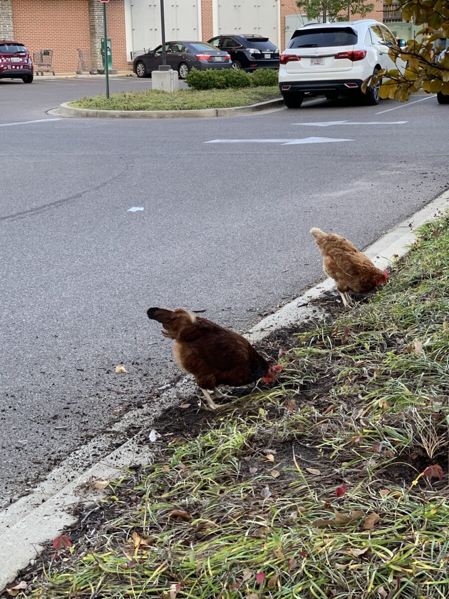 Chickens roaming the parking lot at the Cordova (TN) Whole Foods. Nothing fresher than live!