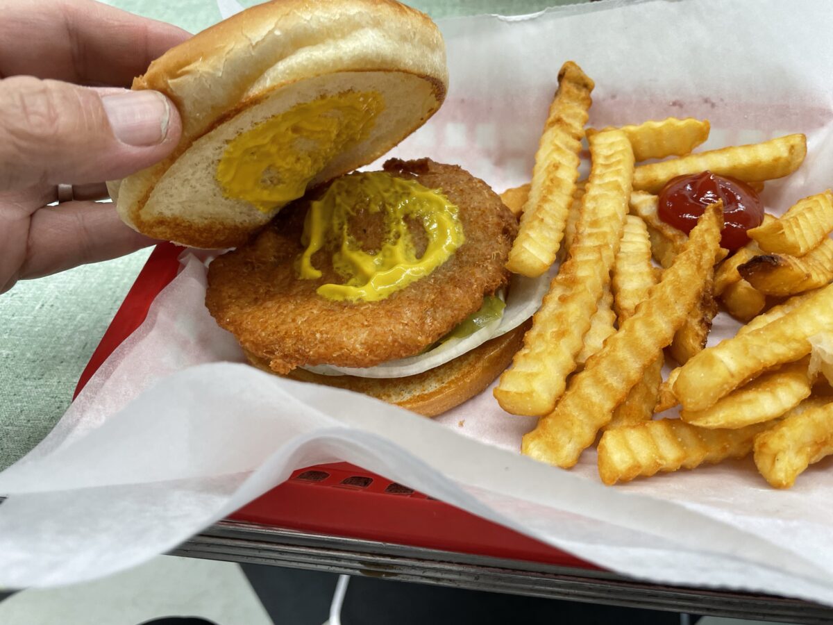 Dan and Slugburgers A Corinth (MS) specialty is something called a slugburger. It’s ground pork, mixed with a filler, then deep-fried. A depression-era invention. They’re not bad… Met Dan for lunch…